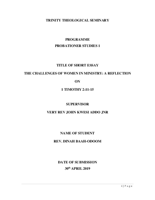 Pdf The Challenges Of Women In Ministry A Reflection On 1 Timothy 2 11 15 Supervisor Very Rev John Kwesi Addo Jnr Name Of Student Rev Dinah Baah Odoom Date Of Submission Dinah Odoom